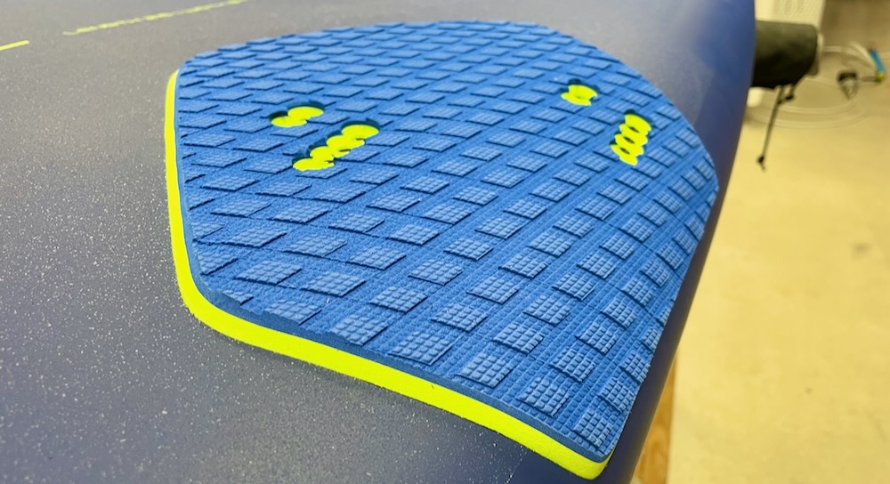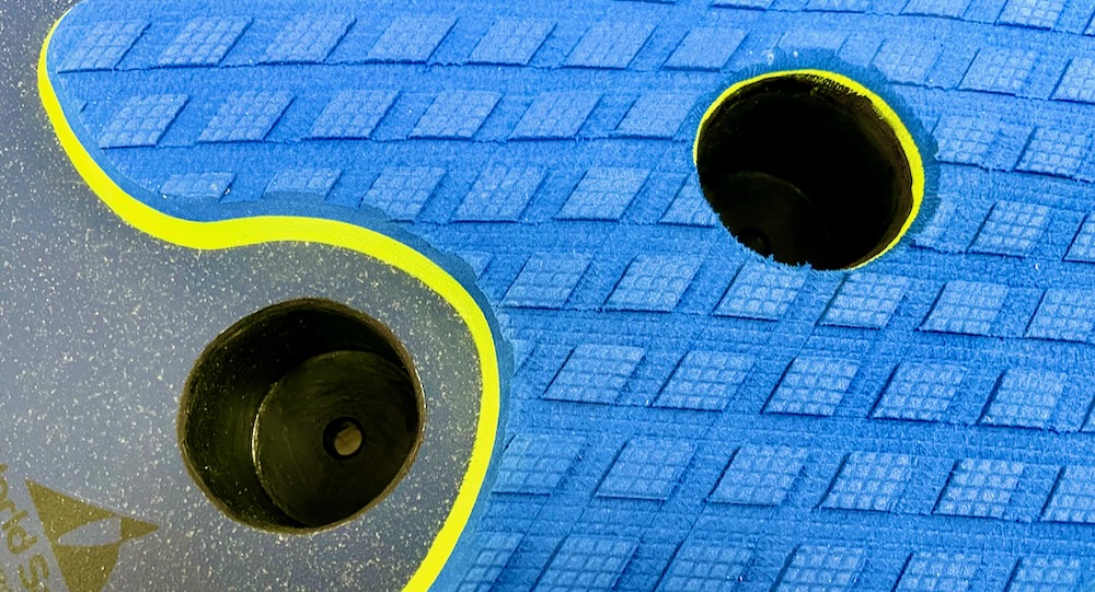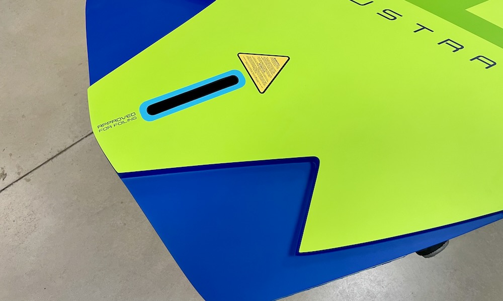 Plus discret, les inserts de strap continuent leur migration vers l'avant pour pouvoir adapter la planche à l'utilisation des foils perf actuels. On pourrait aller encore plus loin, mais c'est déjà un vrai progrès.