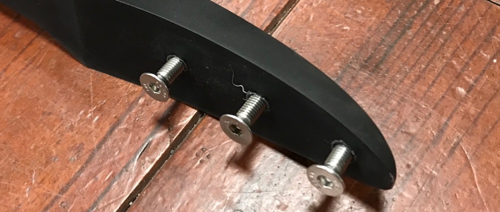 Le montage dans la planche a été un jeu d'enfant. Le talon Deep Tuttle est rentré sans forcer, et s'est parfaitement calé dans le boitier Horue. A la prochaine nav, je ferai peut être quelques ajustement du rake car j'étais un poil piqueur. Notons juste que les perçages des ailes mat (dernières version à priori) sont légèrement désaxés, ce qui fait forcer l'insertion des vis. Ce sera un point à régler avant une production en série.