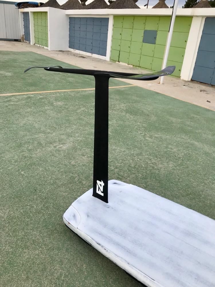 Combiné à mes trois Skyskape 2019 5.8, 7.4 et 9.0 on couvre la plage 8 / 25 nds en rafale. Au dela, je grée mon Oxygen 4.6 et ça alonge encore la plage d'utilisation. Le foil est d'une stabilité hors pair et le jeu de cales fourni par GlissAttitude permet d'affiner encore les réglages pour une navigation sereine bien calé.