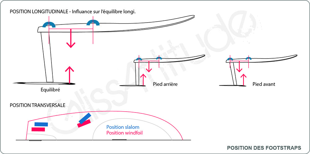 - Footstraps : La position des footstraps est très importante en windfoil ... voir primmordiale.