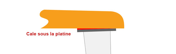 La solution la plus courante consiste à confectionner des cales biseautées qui permettront de relever l'avant (le plus souvent) ou l'arrière de la platine pour arriver à la valeur voulue.