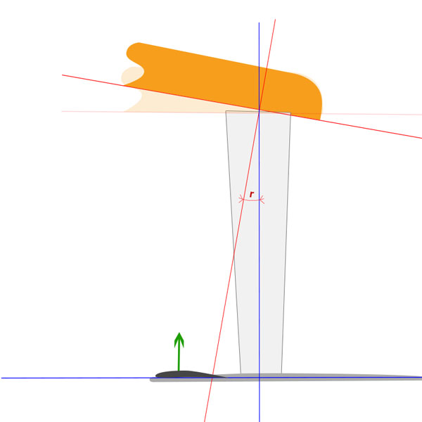 Le rake concerne la pente entre le plat de la carène, et le plan de référence du fuselage du foil. La plupart d'entre nous vissons notre foil sous la planche sans trop se poser de question,