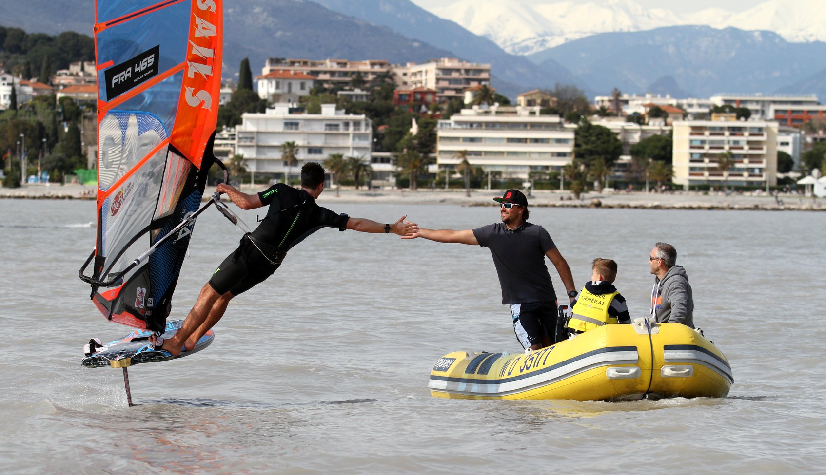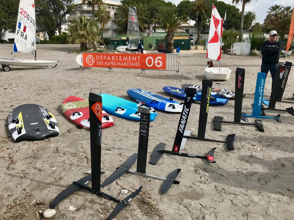 Cette inauguration a été jointe à une journée porte ouverte / test windfoil que nous avons animé avec l’AGASC. Avec plus de 5 flotteurs dédiés et 10 foils , il y en avait pour tous les gouts. Les conditions de navigation étaient intéressantes mais exigentes avec entre 7 et 11 knt de vent, et 4 knt de courant latéral . Effectivement, le Var qui avait grossi avec les pluies des derniers jours déversait des flots d’eau terreuse à quelques degrés, le tout accompagné de bois et autres gros branchage.